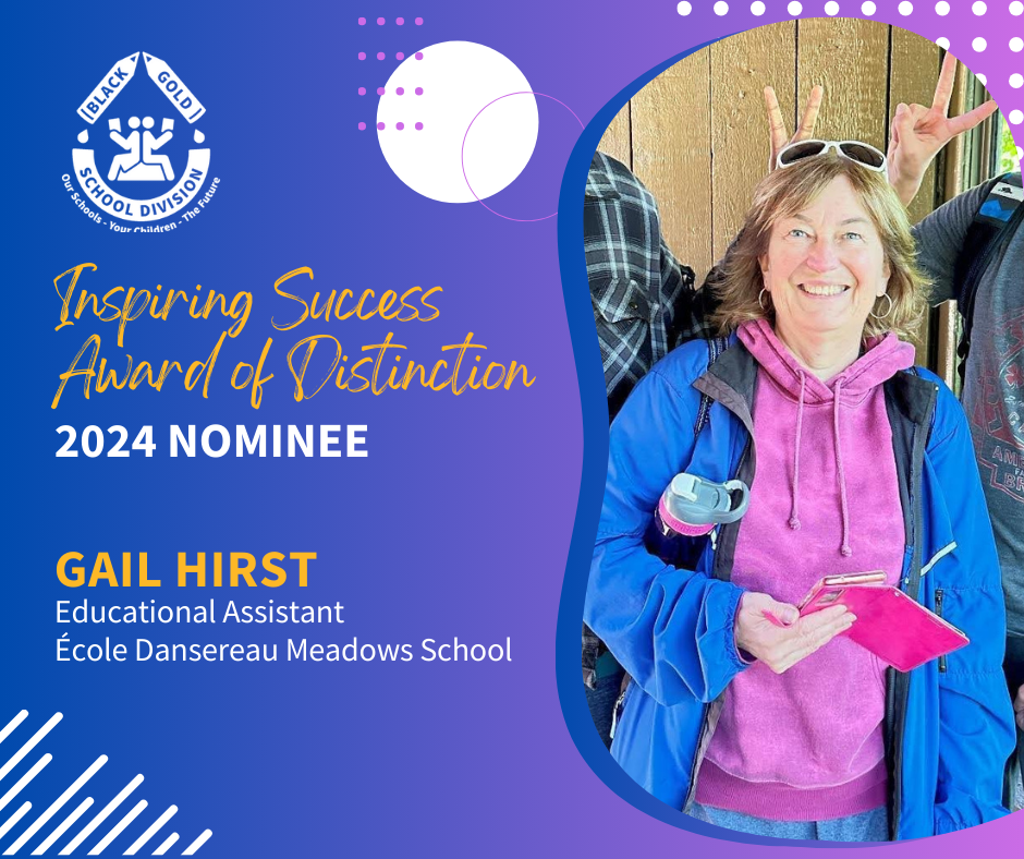 The nominees for this year’s Inspiring Success Award of Distinction include École Dansereau Meadows School (EDMS) Educational Assistant, Gail Hirst.