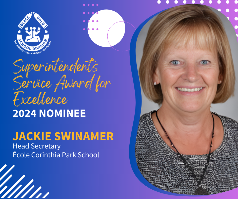 The nominees for this year’s Superintendent’s Service Award for Excellence include École Corinthia Park School (ECPS) Head Secretary, Jackie Swinamer.
