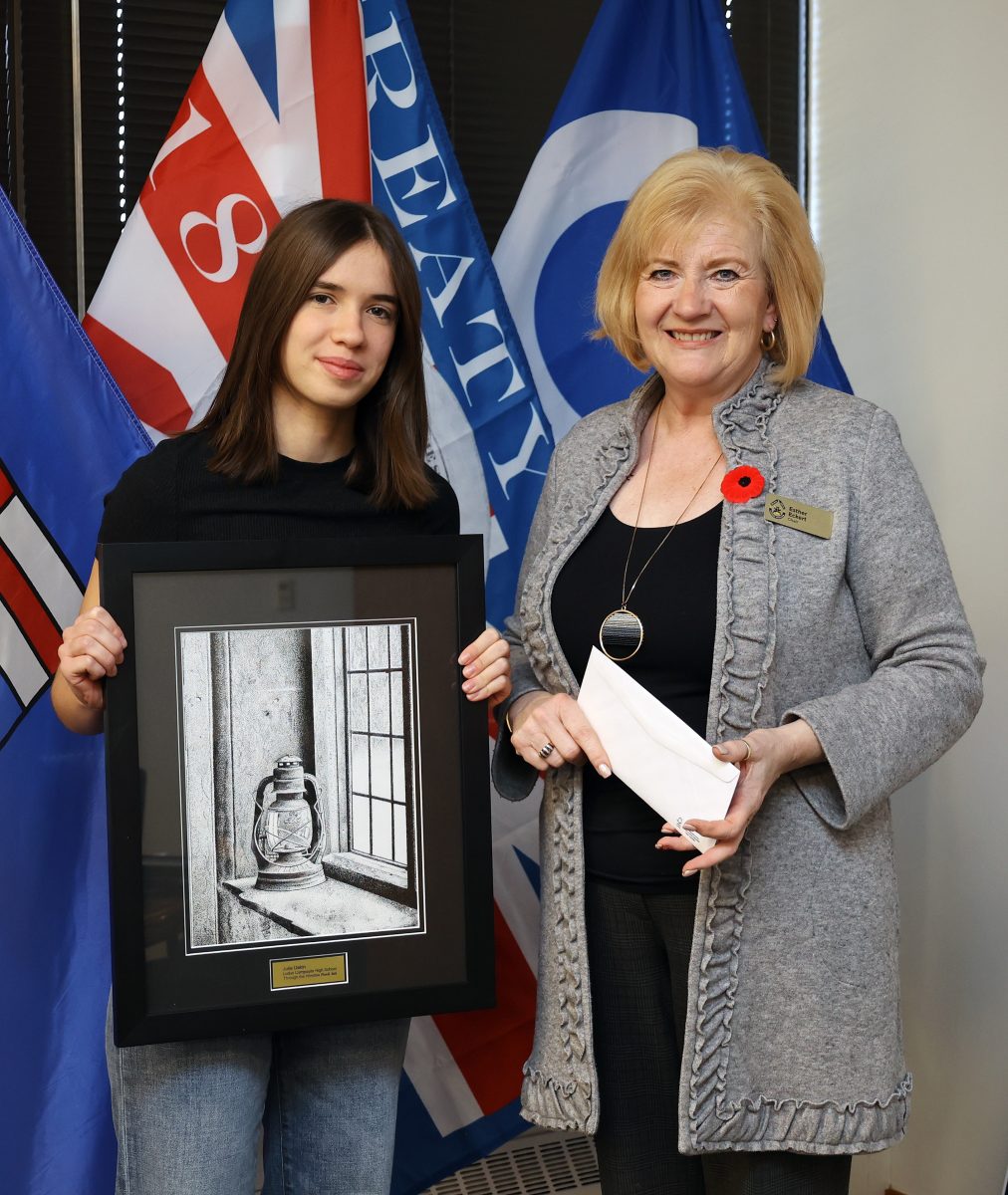 The trustees selected artworks from talented grade 12 students Julie Dakin and Sofia Bariak from Leduc Composite High School, and Maria Villa from Ohpaho Secondary School. The students were also recognized at the October 30, 2024, Regular Board Meeting.