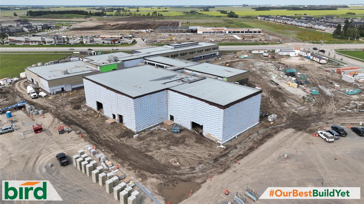 Workers will next start installing the building overhead doors and radiant panels, and begin work on sidewalk and parking lot construction.