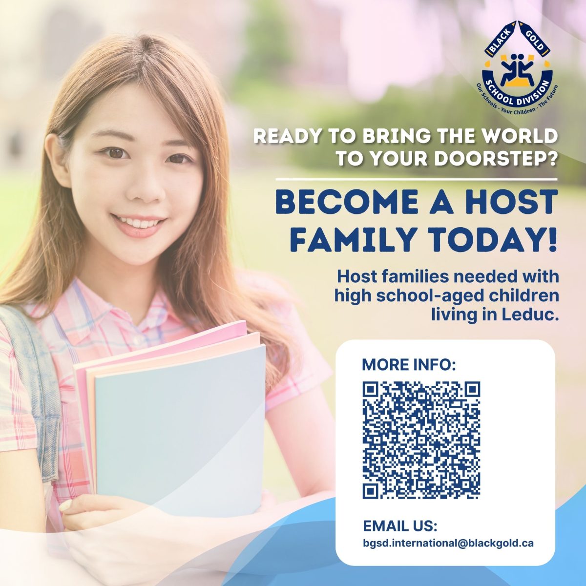 For more information, please contact your high school principal or visit the BGSD International Student Program – Information for Host Families. Have questions? Email us at bgsd.international@blackgold.ca.