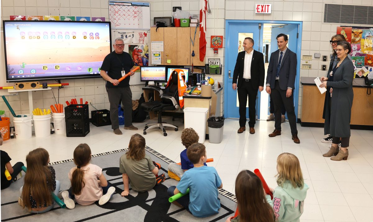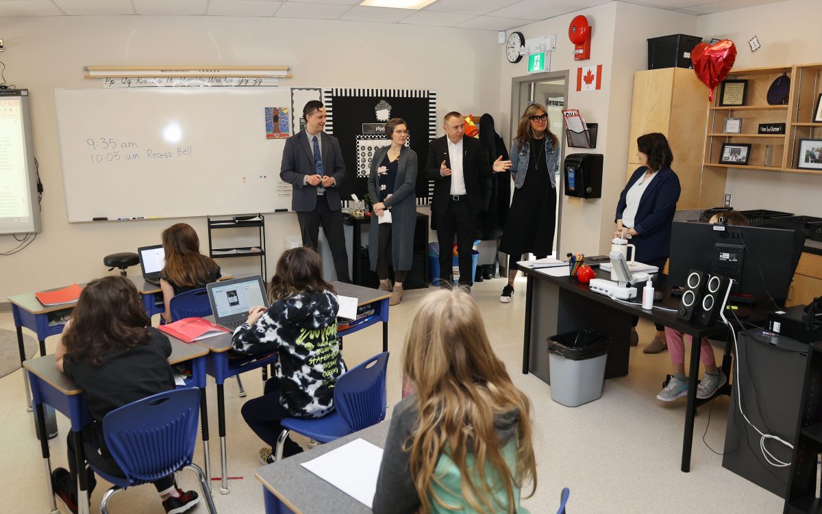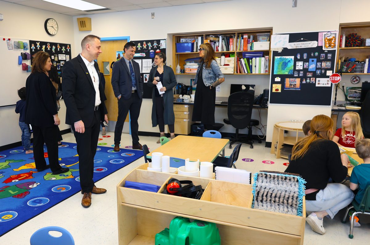 MLA Andrew Boitchenko (Drayton Valley – Devon) joined Trustee Devonna Klaassen for a tour of the Robina Baker Elementary School’s Pre-Kindergarten – Grade 4 programs, and to discuss the successes, challenges, and opportunities facing the school. They were joined by Principal Jared Coffin, Assistant Principal Danielle Kirton, and School Council chair Serena Grimson.