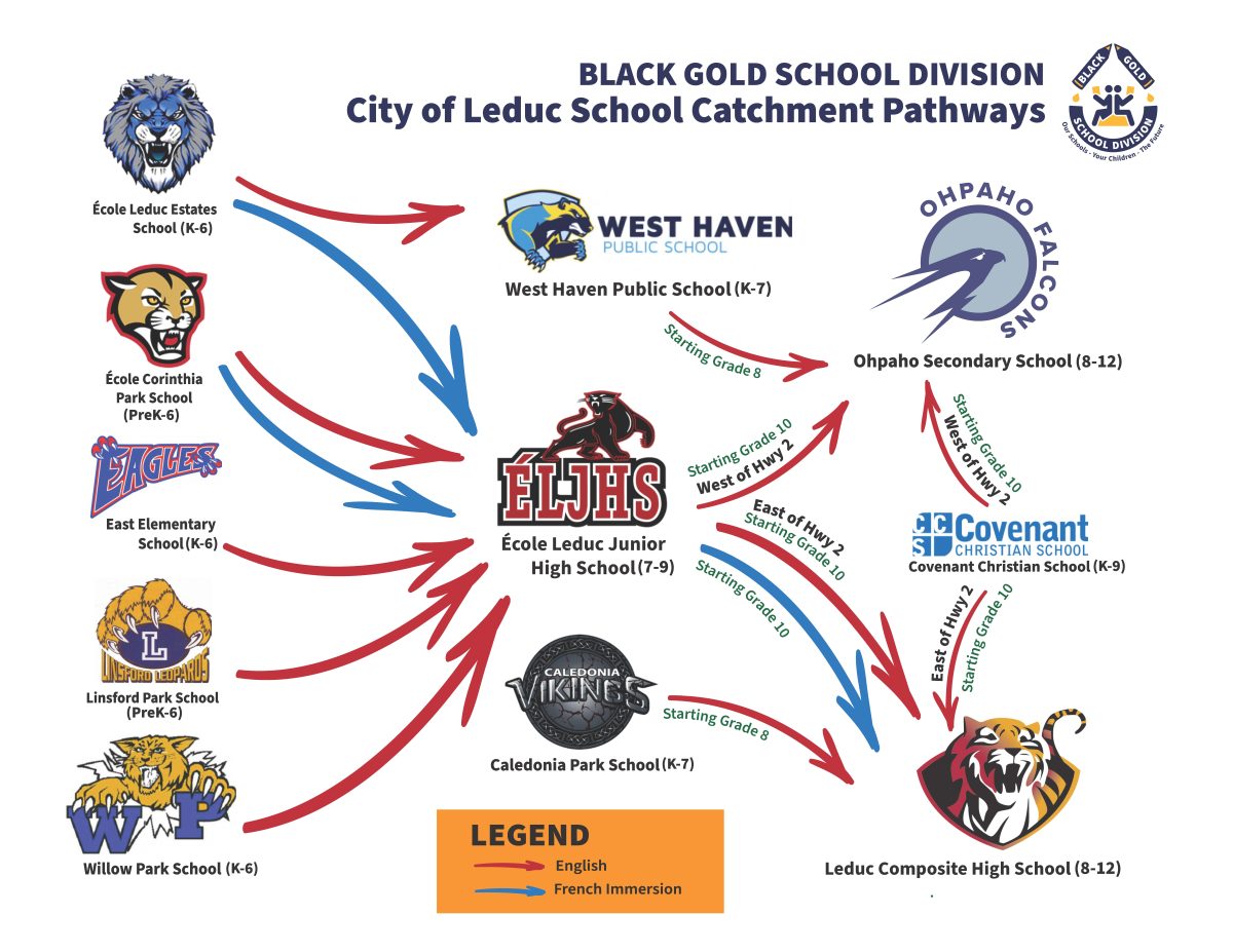 - Relocating all K – 6 students from the Black Stone neighbourhood to École Leduc Estates School for French Immersion (FI) programming, and to West Haven Public School for English (ENG) programming.