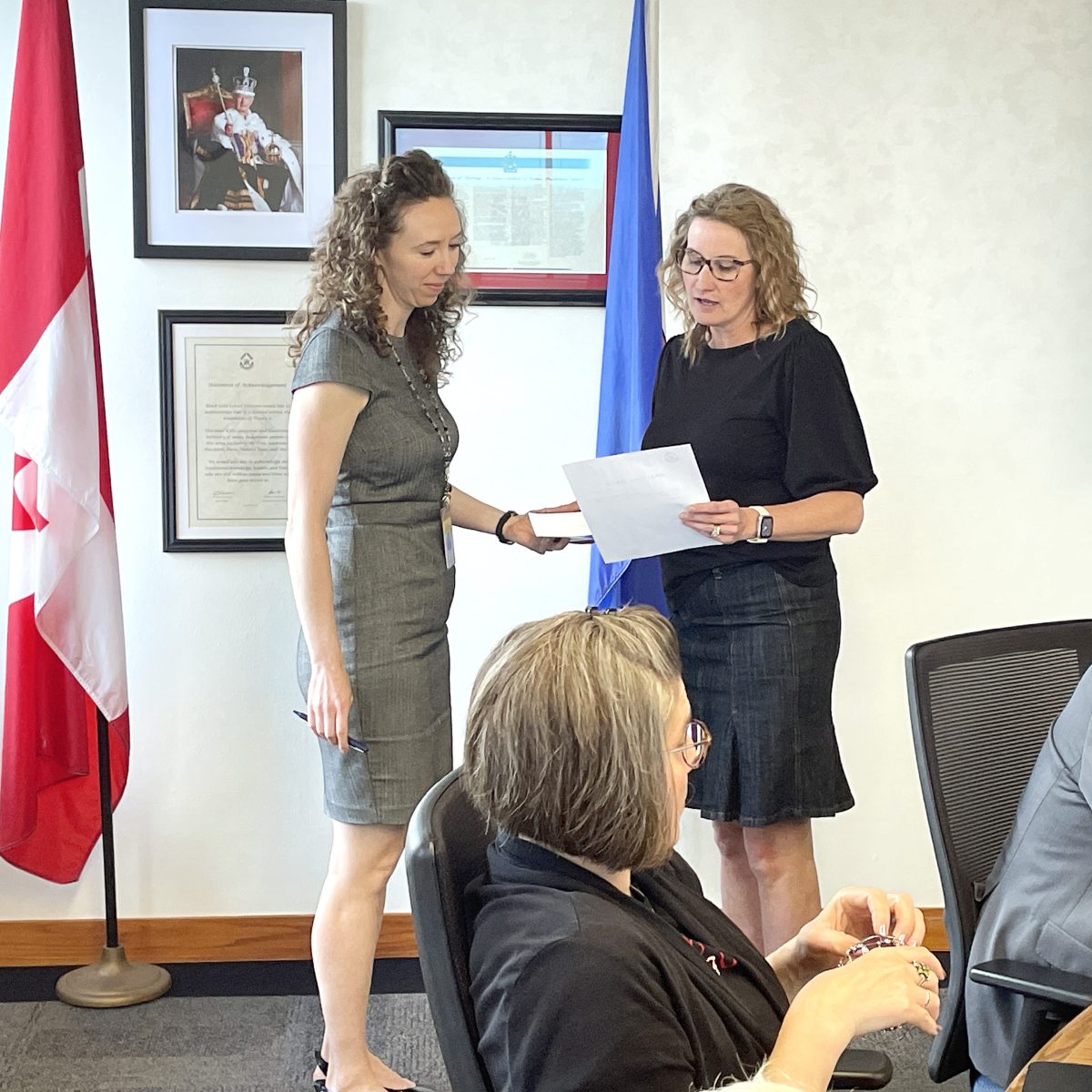 At their Organizational Meeting on June 19, 2024, the Board of Trustees re-acclaimed Board Chair Esther Eckert and Vice Chair Angie Charpentier to their respective roles for the 2024-2025 term.